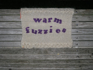 With: a darning needle, some scissors, and any suitable knitted item(s) to tag with. This may be a scarf, thrifted blanket, strangely shaped thing you gave up knitted years ago, or waylaid peggy squares. If you want to specifically knit something, rectangles about 20 - 40 stitches wide are the way to go.